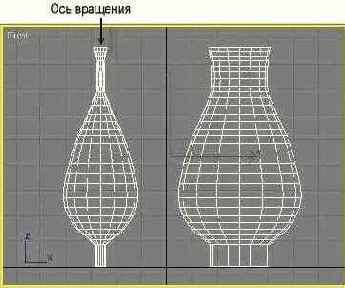 2. Выберите инструмент Select and Move (Выделить и переместить), щелкните на оси и перетащите ее влево, наблюдая за изменением формы тела вращения, как показано на рис. 6.26.